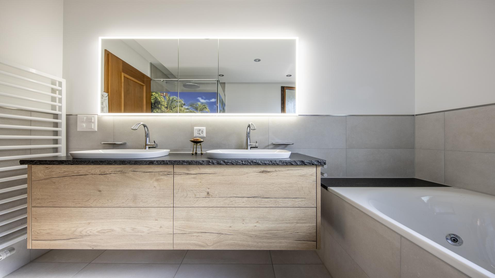 Durch Vorsprünge, schmale Nischen oder eine Schräge wird oft zusätzlicher Platz verschenkt. Um diese Bereiche besser nutzen zu können, fertigen wir Badmöbel nach Mass an, zugeschnitten und gefertigt ganz nach Ihren individuellen Wünschen und Bedürfnissen.